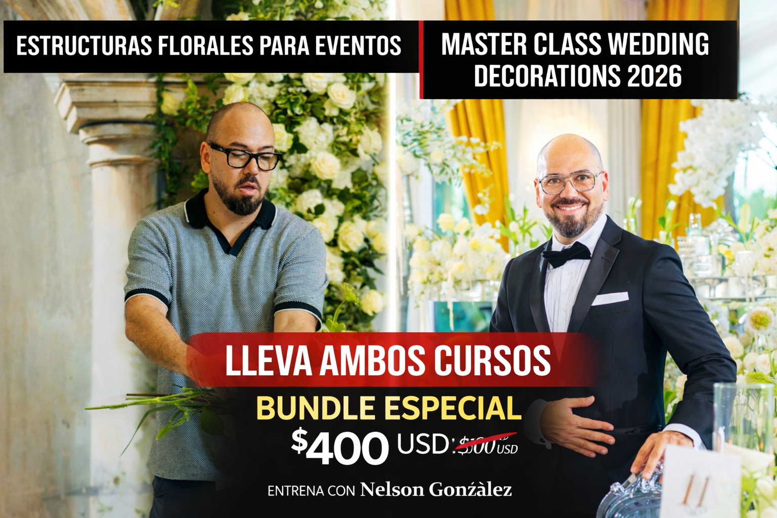Aprende desde casa con Nelson González de @EVOLUTIONEVENTOS a estructurar, diseñar y presentar decoraciones de impacto para bodas y eventos.